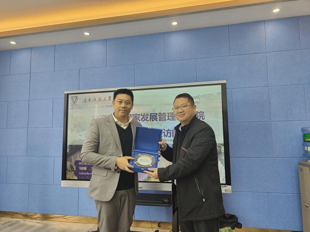 随后,双方就中泰合作办学、科研项目、交流合作等相关事宜进行了探讨,对人才培养模式、国际实验室合作、互派学员、两校教师联合讲座等议题进行了深入交流。双方一致表示,将继续深化“双边”合作,积极开展中泰合作办学项目申报,推进联合人才培养项目落地。NIDA学员就泰国的学习情况、学习体验进行了分享。会谈结束,双方互赠礼物并留影纪念。
