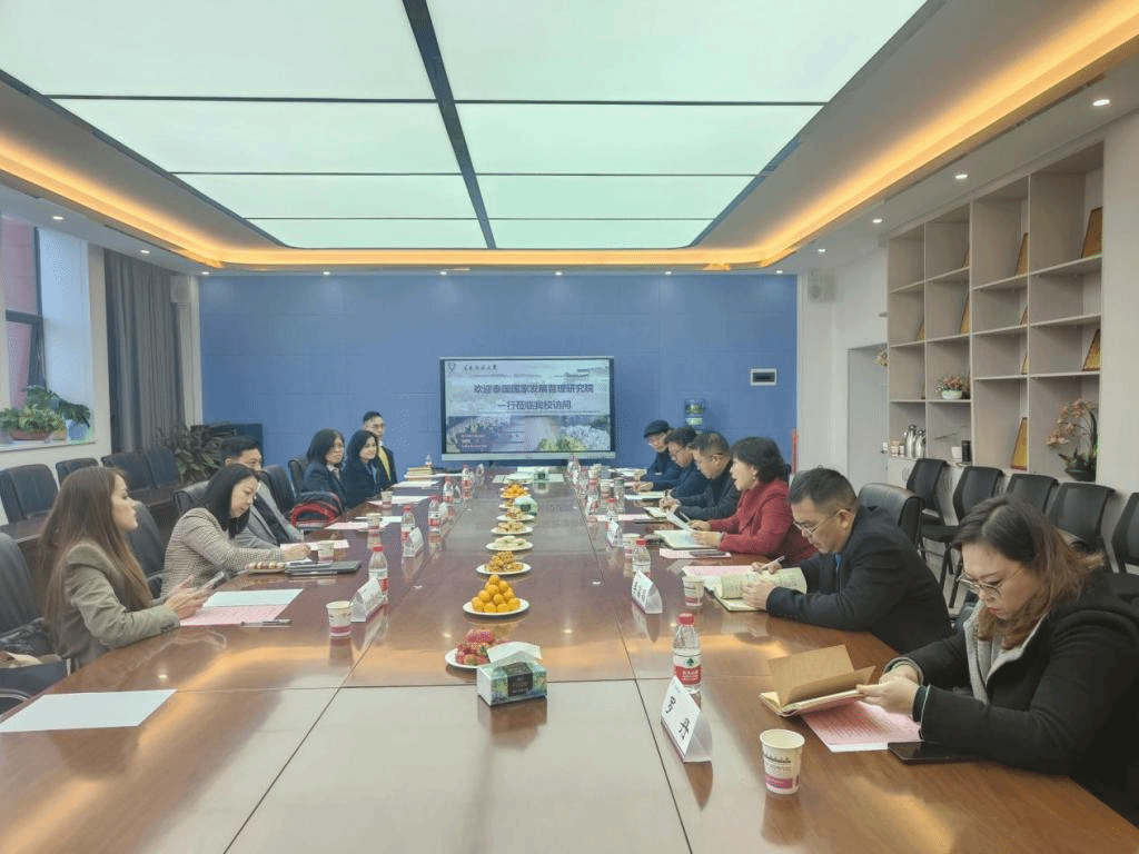 12月18日上午,泰国国家发展管理研究院(National Institute of Development Administration,NIDA)代表团访问我校,并与经济与管理学院就合作办学、师生交流、科研合作、互派学员等事宜交流会谈,以推进双方更深层次交流与合作。