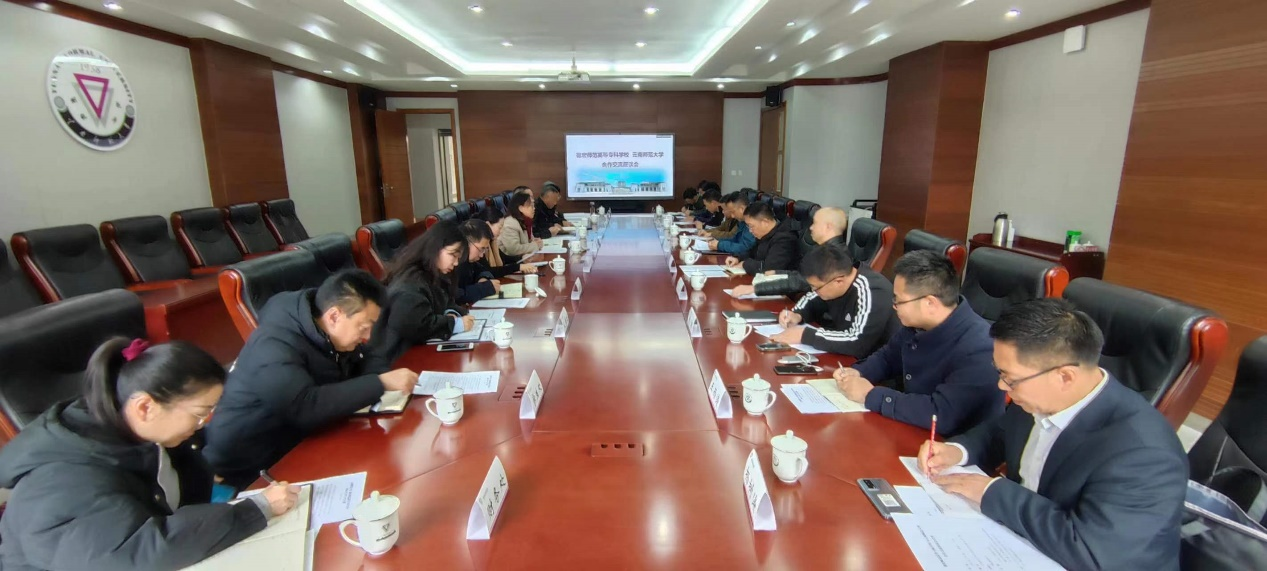 12月26日下午,德宏师范高等专科学校杨明宏校长一行到访我校,就2024年度合作事宜进行商洽,并深入学校相关单位进行调研交流。德宏师专副校长黄鹏、苏军国,以及学校组织部、人事处、科研处、后勤服务中心、学生处、教务处、对外合作交流处等部门负责人参加了调研。我校副校长郝淑美、甘健侯、陈正权分别与来宾进行了交流。