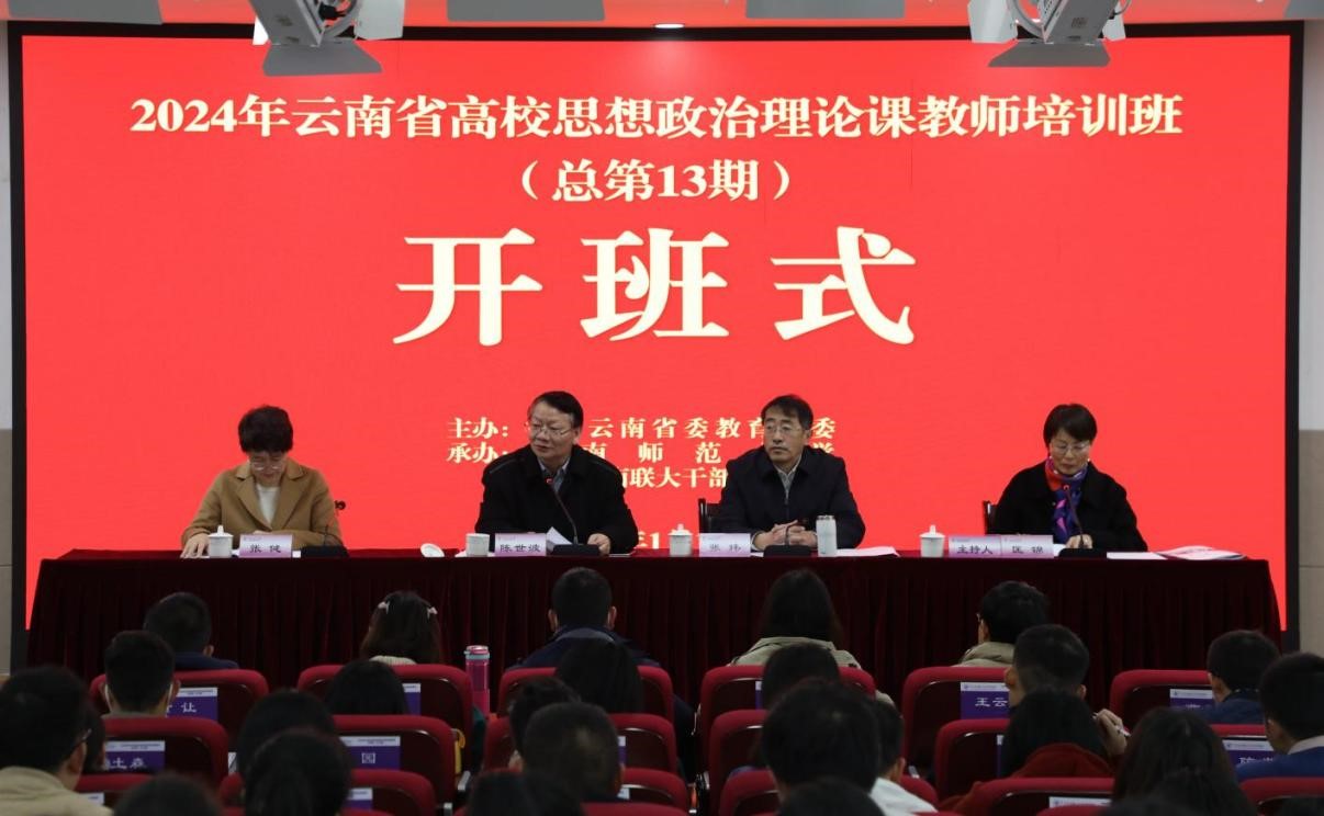 1月10日上午,由省委教育工委主办,我校承办的2024年云南省高校思想政治理论课教师培训班(总第13期)在一二一联大校区举行开班仪式。省委教育工委副书记、省教育厅党组成员陈世波,省委教育工委宣传部副部长厉莉,我校党委副书记张玮以及来自87所高校的183名学员参加了开班仪式。仪式由云南西南联大干部培训基地执行主任匡锦主持。