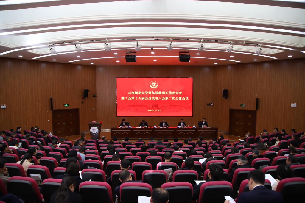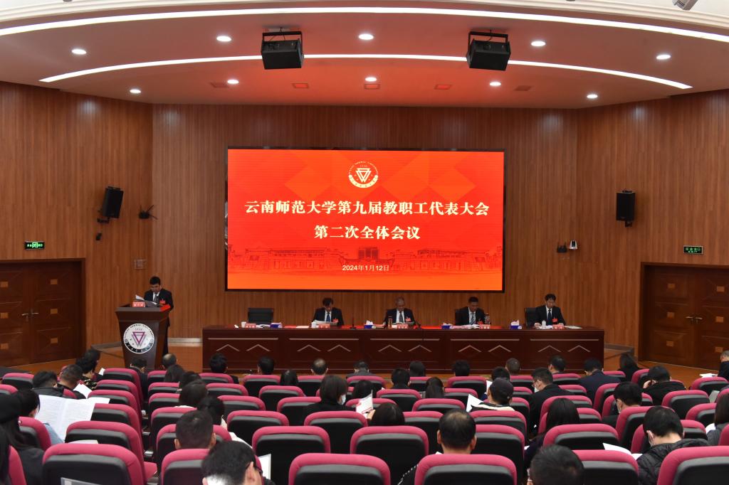 1月12日,365英国上市官网第九届教职工代表大会暨工会第十六届会员代表大会第二次全体会议在呈贡校区汇学楼报告厅举行。会议听取了学校2023年度工作报告、财务工作报告;审议和批准了学校工会第十六届委员会工作报告、经费审查委员会工作报告。
