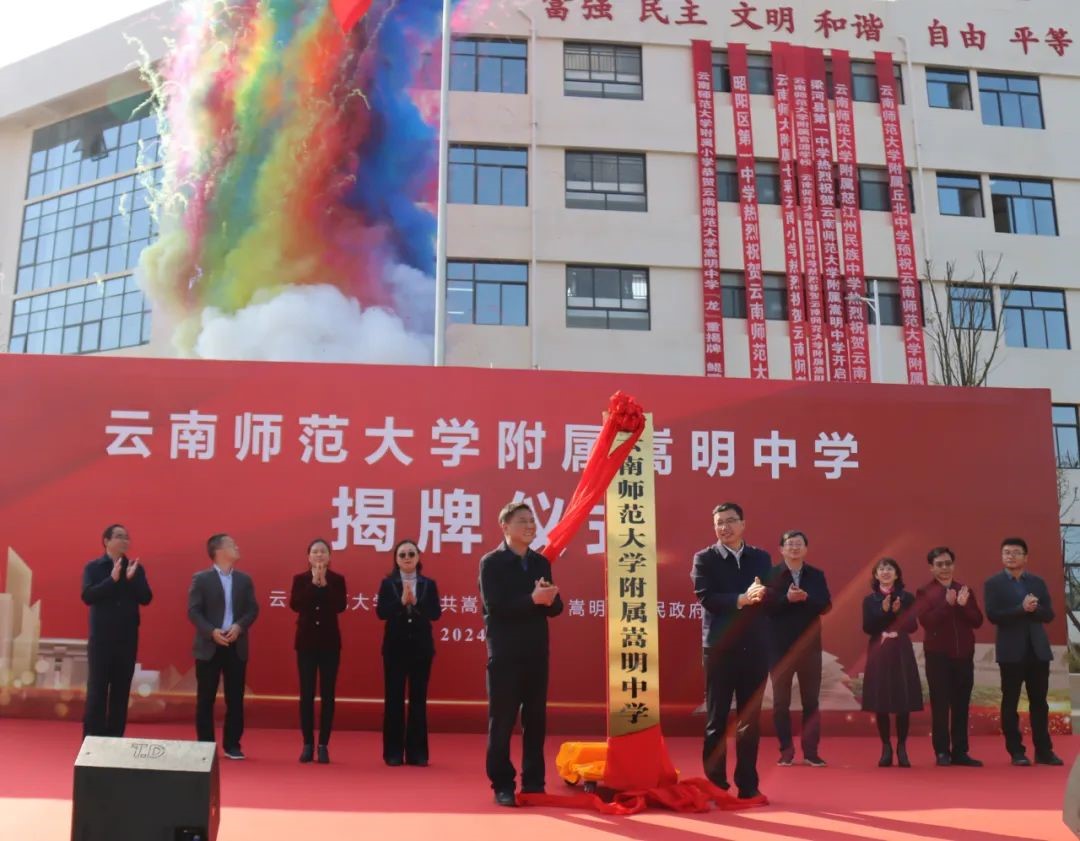 昆明市教体局、嵩明县,云南师大基础教育集团、云南民族中学相关领导出席仪式,365英国上市官网附属嵩明中学全体教职工及部分学生、家长代表,嵩明部分中小学校代表,在嵩高校、企业代表参加仪式。