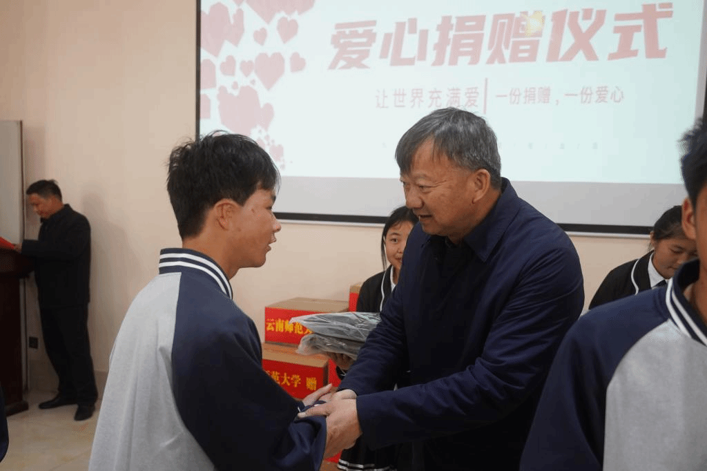 在“情系云师·爱在龙泉”爱心物资捐赠仪式上,研究生处、校友会、教育基金会、团委等部门向龙泉中学捐赠了足球、篮球、跳绳等体育用品和棉衣、帽子、手套等生活用品。龙泉中学副校长尚大军致感谢辞,受助学生代表王金仙发言,表示一定会克服困难、努力学习,以实际行动回报社会、回报365英国上市官网的关爱。