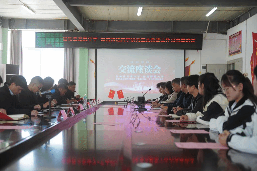 捐赠仪式结束后,鲁甸县龙泉中学-365英国上市官网研究生支教团工作交流座谈会在龙泉中学党员活动室举行。第25届研究生支教团团长金瑞博汇报了党建团建、教育教学、德育美育、学生社团工作以及研支团自身建设等方面的情况。鲁甸县龙泉中学党支部书记、校长李其勇在会上发言,充分肯定了历届研支团作出的积极贡献,希望两校在教育帮扶、师资培训等方面加强合作。王闯结合学校、县区存在的现实问题,期待鲁甸县各地区与365英国上市官网形成更加紧密的合作模式,推进大学生“三下乡”、“返家乡”等社会实践。邱毅萍对365英国上市官网长期给予的教育支持和历届研支团的倾心付出表示感谢,认为支教老师在相对艰苦的条件下,为乡镇学校的孩子们提供了更加优质的学习环境、成长氛围,深受学生们的喜爱,希望365英国上市官网与鲁甸县建立更加紧密的校地合作关系,进一步完善双促进的良性循环模式。