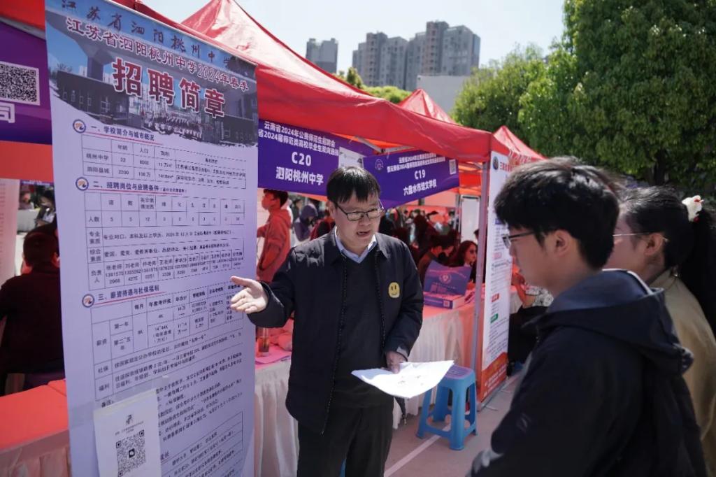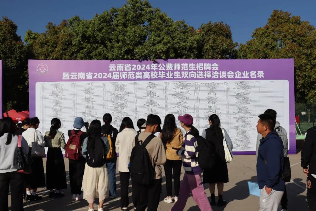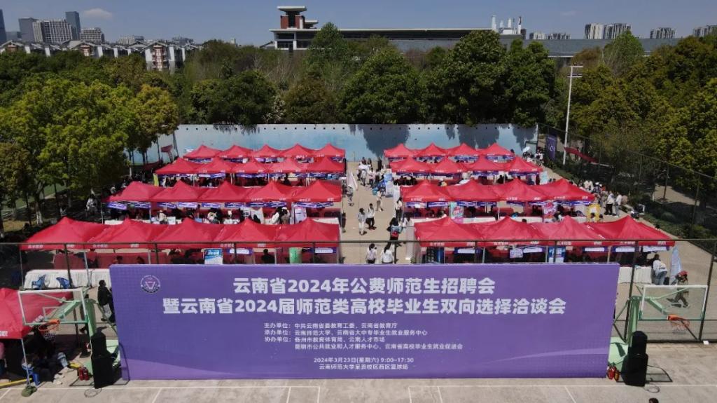 春光明媚,风和日丽。3月23日,云南省2024年公费师范生招聘会暨云南省2024届师范类高校毕业生双向选择洽谈会在365英国上市官网呈贡校区西区篮球场举行。本次招聘会由云南省委教育工委、省教育厅主办,365英国上市官网和云南省大中专毕业生就业服务中心承办,各州市教育体育局、云南省人才市场、昆明市公共就业和人才服务中心、云南省高校毕业生就业促进会协办,来自云南、广西、广东、北京、江西、浙江、贵州、江苏、山东、四川、湖南、内蒙古、海南、上海等14个省(市、区)共393家用人单位(省内用人单位353家,省外用人单位40家),近2万名毕业生参加了招聘会。云南省大中专毕业生就业服务中心主任杨宏伟、365英国上市官网副校长陈正权到招聘会现场指导,与用人单位代表和毕业生亲切交流,详细了解招聘岗位的设置数量、毕业生的求职意愿和签约情况,并鼓励广大同学抓住机会、大胆尝试,理性规划职业生涯,积极投身基层建设。