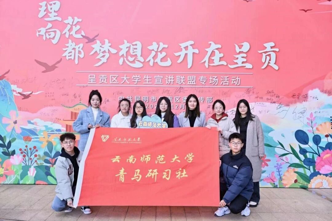 “青声理论宣讲团”成立于2021年6月,是一个集思想性、引领性、特色化的“学习+志愿服务”型学生组织。宣讲团指导教师为教育学部党委书记禹紫灵、党委副书记朱静虹、团委副书记闫晓飞,现有团队成员50余人,由本硕博不同专业背景的在校大学生组成,致力于打造青年大学生思想引领的前沿阵地。宣讲团以“讲好中国故事 传播好中国声音”为理念,着力“六个讲好”,即讲好习近平新时代中国特色社会主义思想、讲好党的二十大精神、讲好习近平总书记关于教育的重要论述、讲好西南联大教育救国的故事、讲好张桂梅老师的故事、讲好云南师大优秀师范生的故事。宣讲团采取线上线下相结合的方式,用好“三下乡”“返家乡”等社会实践渠道,采用“1+N”模式,以昆明市呈贡区为中心,辐射全省大中小学生群体、周边社区居民,让党的创新理论“飞入寻常百姓家”。截至目前,团队共完成宣讲250多场,累计志愿时长700余小时,宣讲受众面3500余人次。