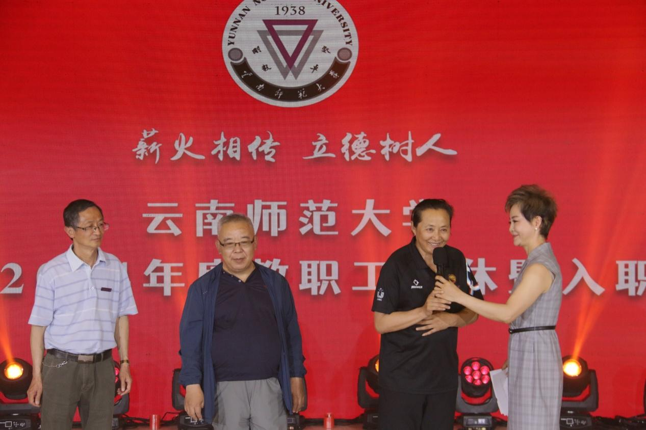 薪火相传,立德树人。4月18日下午,我校在呈贡校区明德楼演播厅举行教职工荣休暨入职典礼。校党委书记张祖武,校长胡金明,党委副书记李宏,副校长孟庆红、牛治亮、武友德、甘健侯、陈正权、徐锐以及荣休教职工、新入职教师,相关单位主要负责人、学生代表共200余人参加典礼。