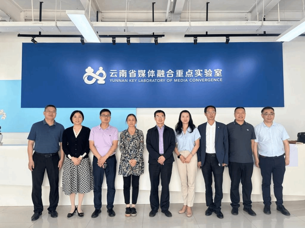 周明侠一行参观了传媒学院融媒体大数据实验室、演播实验室、专业录音室,体验了学院最新建成的大数据舆情系统、中央厨房、实景演播厅、虚拟演播室等。随后,又来到传媒学院与云南省媒体融合重点实验室共建的融媒学院,深入了解了实验室的重点工作室和重点项目。三方紧紧围绕人才培养和数字产业发展热点议题,进行深度解析、分享经验,聚焦数字人才生态建设,共话高素质数字人才培养以及教育数字化协同创新的新经验、新方法。