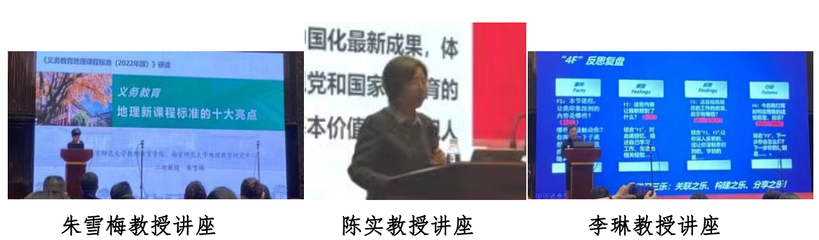 接下来的培训中,朱雪梅教授《义务教育地理课程标准的十大亮点》的讲座,从立德树人、跨学科主题学习、地理核心素养、地理学业质量、课程内容结构化、地理工具、主动学习、地理素养测评、教科书数字化以及教师培训与教研活动10个方面,深入解读新课标内涵与外延,为义务教育地理教育工作者提供宝贵的指导和启示;陈实教授《思想、结构与特色:仁爱版义务教育地理教科书报告》的讲座,解读了该教材的指导思想、编写原则、编写思路及教材结构与特色,为地理教育工作者提供宝贵的教材编写和使用经验,对推动地理教育的创新与发展具有重要意义;李琳教授《基于新课标新教材的精准教学原理及其运用》的讲座,从概念辨析、精准教学基本原理、内外分析法及其教学运用和分类分层法及其教学运用方面进行讲解。并深入探讨了指向地理核心素养的精准设问与追问方法的应用,为地理教育的创新发展提供新视角。
