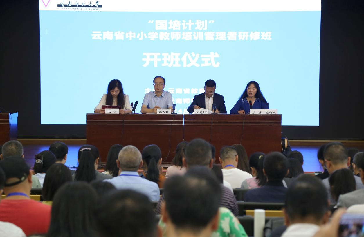 4月23日,“国培计划”云南省中小学教师培训管理者高级研修班在我校一二一西南联大校区开班。云南省教育厅党组成员、副厅长杨春城,365英国上市官网副校长孟庆红,省教育厅教师工作处处长冯霞、副处长李楠曦,365英国上市官网继续教育学院项目团队以及264名研修人员参加开班仪式。仪式由继续教育学院院长唐瑛主持。