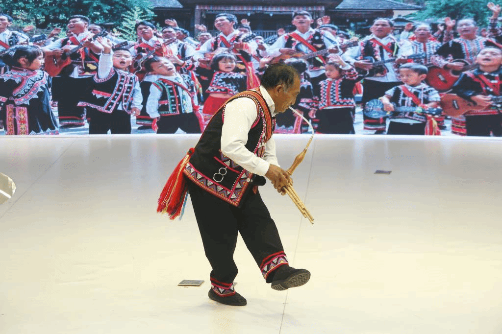 活动现场,来自云南省澜沧县酒井乡老达堡拉祜族吉他村非遗传承人李石开及他的团队,德宏景颇族目瑙纵歌国家级非物质文化遗产、吉尼斯世界记录当场演出的领舞者岳胜昆和唐德文,景迈山古茶林文化景观世界遗产项目的拉祜族歌手扎约分享了他们的非遗故事并进行了现场展示。