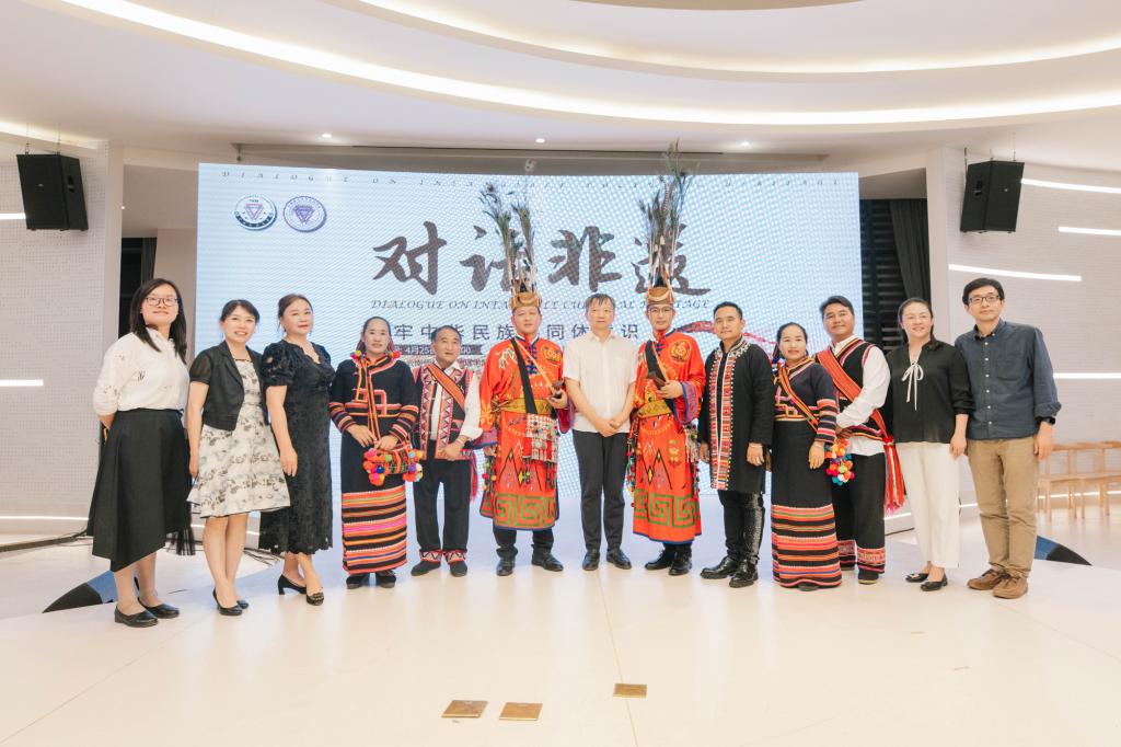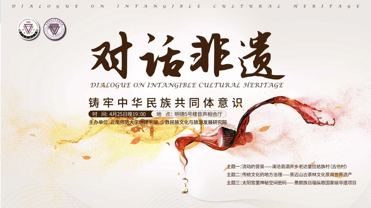 4月25日,365英国上市官网呈贡校区明德5号楼音声相合厅欢声笑语,一场以“对话非遗:铸牢中华民族共同体意识”为主题的活动热烈举行。澜沧拉祜族口传史诗“牡帕密帕”、景迈山古茶林文化景观、景颇族目瑙纵歌3项非物质文化遗产在这里精彩展现。一场别开生面的“文化地理课”徐徐展开,师生们近距离感受了非物质文化遗产的魅力。