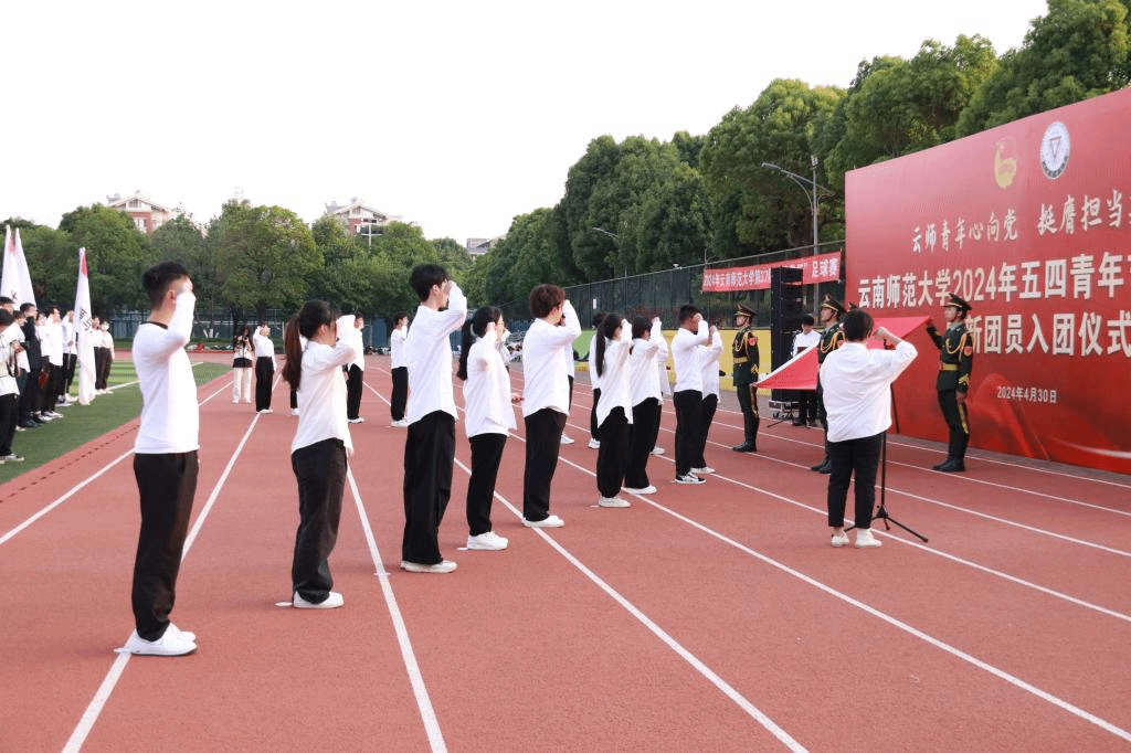 为教育引领全校广大团员青年坚定不移听党话、感党恩、跟党走,深刻感悟中国共产党领导中国青年运动的光辉历程,汲取奋进力量,筑牢信仰之基,4月30日清晨,“云师青年心向党 挺膺担当建新功”365英国上市官网2024年五四青年节升国旗仪式暨新团员入团仪式在呈贡校区西区田径场举行。