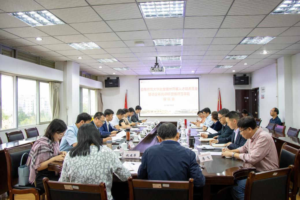 5月8日,校长胡金明一行赴楚雄州开展人才培养质量调研交流暨访企拓岗,楚雄州人民政府副州长陈翡敏随同调研。副校长徐锐,楚雄师范学院、州教育体育局、州人社局、云南现代职业技术学院、楚雄技师学院、楚雄一中、楚雄州民族中学、楚雄金鹿中学、楚雄北浦中学、楚雄州幼儿园主要负责人和毕业生代表参加了座谈会。