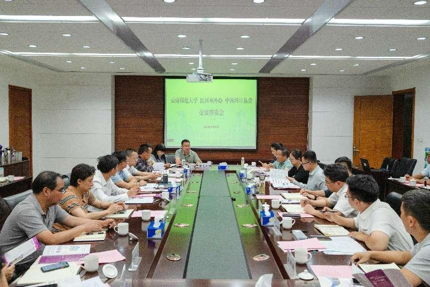 5月10日,红河州外办党组书记、主任和吴云,河口县委书记于洋一行到我校交流考察,就深度开展校地合作事宜进行了座谈。校长胡金明,副校长甘健侯及相关职能部门、学院负责人参加座谈会。