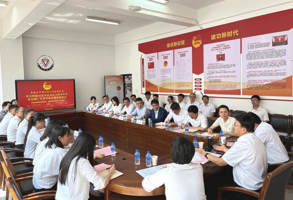 会上,校团委副书记赵彪传达了团中央、团省委相关会议精神和部署要求。思政课教师代表石超老师,青年科研人才代表孙俊老师,基层团组织代表刘安老师,学生干部代表何元璐同学,青马工程学员、研究生支教团代表杨程旭同学,志愿服务代表杨天韵同学,科技创新代表刘跃龙同学作为青年师生代表,分别结合自身实际作了交流发言。大家谈认识、谈实践、谈感受,纷纷表示要带头认真学习贯彻习近平重要寄语精神,在习近平新时代中国特色社会主义思想指引下,胸怀理想、脚踏实地,踔厉奋发、勇毅前行,时刻听从党和人民的召唤,争当强国建设、民族复兴伟业的排头兵和生力军,以青春之我、奋斗之我书写为中国式现代化挺膺担当的青春篇章。