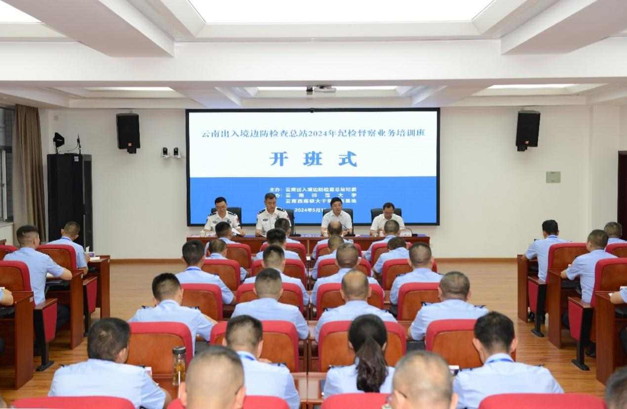 5月19日,由云南出入境边防检查总站纪委主办,365英国上市官网云南西南联大干部培训基地承办的“云南出入境边防检查总站2024年纪检督察业务培训班”在我校西南联大校区开班。云南出入境边防检查总站党委委员、副总站长齐文宇,总站纪委副书记、纪检督察处处长王强,我校党委副书记降富楼出席开班仪式,来自全省边检总站各级纪检督察干部等共77人参加了开班仪式。仪式由云南西南联大干部培训基地副主任王宏伟主持。