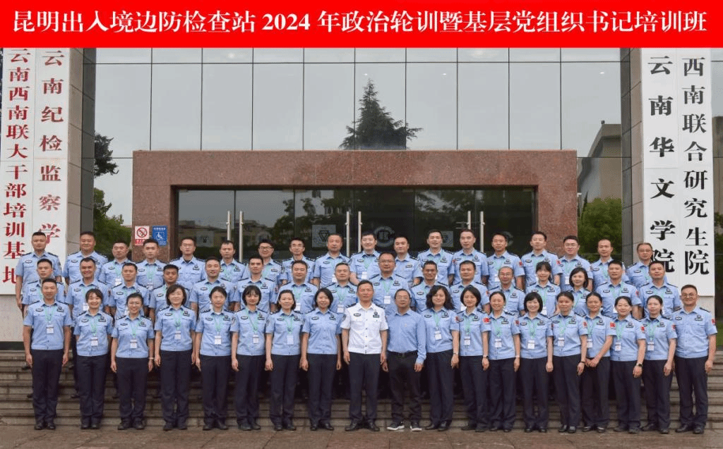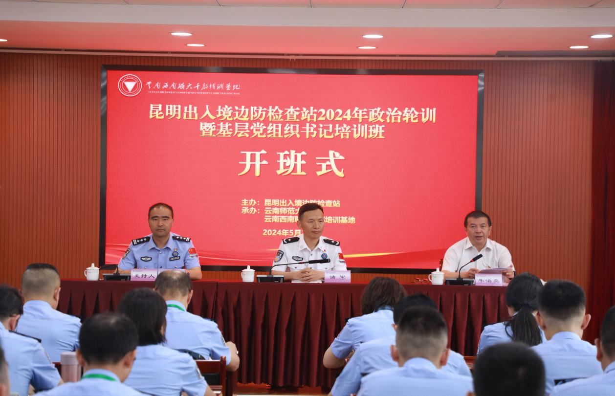 5月20日,由昆明出入境边防检查站主办,云南西南联大干部培训基地承办的“昆明出入境边防检查站2024年政治轮训暨基层党组织书记培训班”在我校西南联大校区开班。昆明出入境边防检查站党委副书记、政治委员诸军,我校党委常委、副校长牛治亮出席开班仪式,来自昆明出入境边防检查站参训民警共52人参加了开班仪式。仪式由昆明出入境边防检查站党委委员、副站长李锦标主持。