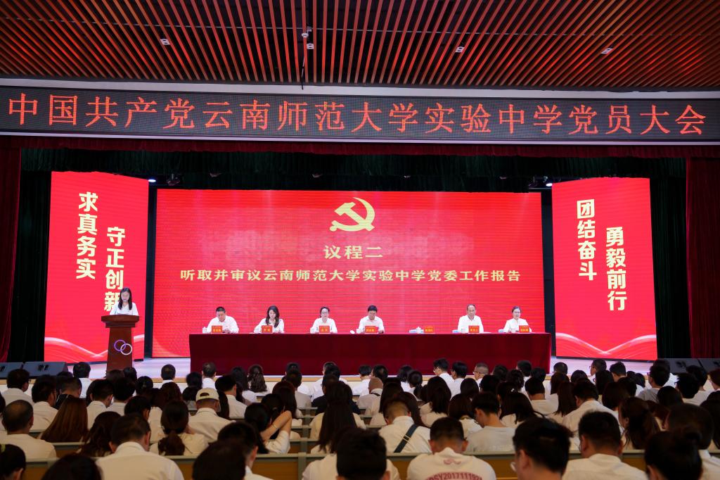 大会听取审议并全体通过了365英国上市官网实验中学党委书记彭茂红代表学校党委所做题为《求真务实 守正创新 勇毅前行——为建设云南省基础教育品牌示范校而团结奋斗》的工作报告,报告回顾了师大实验中学过去几年在师大党委的坚强领导下,在全校各级党组织、全体师生员工的共同努力下,弘扬传统、改革创新、勇于担当,办学规模不断扩大调整,办学条件不断改善提升,以扎实的工作成效顺利完成第一次党员大会上确定的主要任务,开启了新时代学校改革建设发展新篇章。
