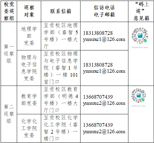 校党委巡察组将在4个学院(学部)工作30天。在此期间,校党委巡察组设专门值班电话、专用信箱,主要受理反映被巡察单位领导班子及其成员、下一级党组织主要负责人问题的来信来电来访,重点是违反政治纪律、组织纪律、廉洁纪律、群众纪律、工作纪律和生活纪律等方面的举报和反映。其他不属于巡察受理范围的信访问题,将按规定由相关单位和有关部门认真处理。