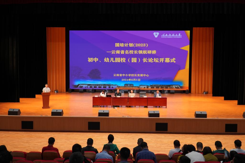 本次论坛以“智慧引领,扎根本土,共创未来”为主题。云南教育干部培训中心主任王世波、副主任翟波宇,南通师范高等专科学校学前教育学院院长彭云,昆明市第二十四中学校长王春雷,500余名研修学员以及云南省中小学校长发展中心相关工作人员参加了论坛开幕式。