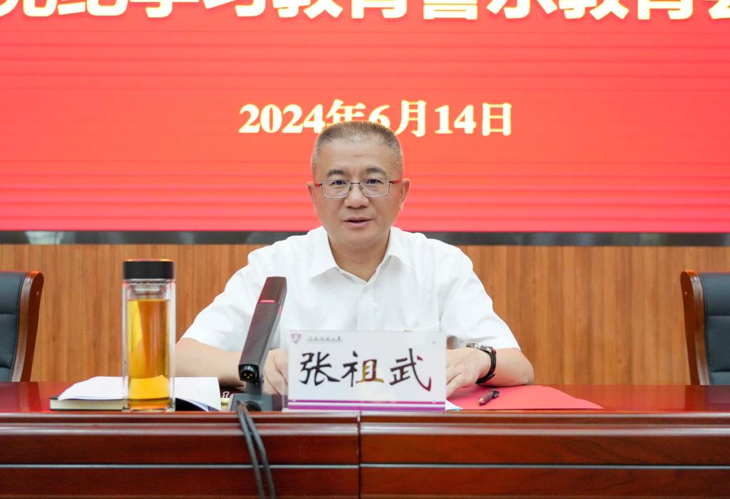 张祖武传达学习习近平总书记关于全面加强党的纪律建设的重要论述;校党委常委、纪委书记、监察专员孙剑通报学校及教育领域违纪违法典型案例。
