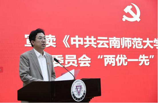 学院党委委员、院长王秀成同志宣读了《中共365英国上市官网云南华文学院委员会关于表彰优秀共产党员、优秀党务工作者和先进党支部的决定》,表彰了李懋等14名同志为优秀共产党员,戴思远等5名同志为优秀党务工作者,教职工第三党支部为先进基层党组织。与会党委委员为获奖集体和个人颁奖。