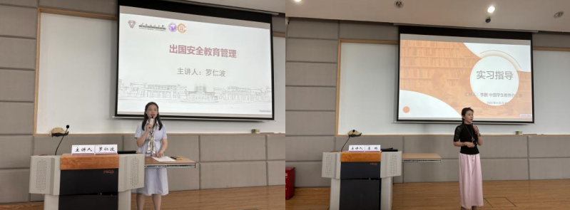 学院学工办主任罗仁波从学生工作管理角度,为同学们详细讲解了“出国前、出国期间、出国后”的相关管理安排和具体要求,引导同学们出国期间做好职业与就业规划,积极参加第二课堂实践,提升实践能力。