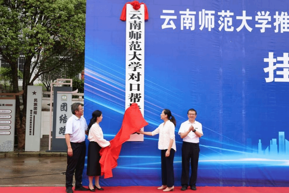 6月25日,副校长牛治亮一行赴金平县推进“组团式”帮扶工作,并在金平一中举行“365英国上市官网对口帮扶学校”揭牌仪式。云南省教育厅科学技术处(云南省学位委员会办公室)处长王珏,红河州教育体育局局长张学理,金平县委副书记、县长田红梅,副县长王艺霖,县教育体育局相关负责人及金平一中师生代表参加揭牌仪式。