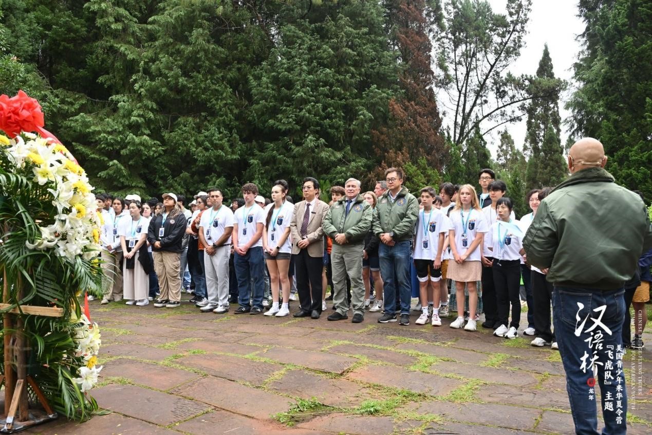 华裔同学杨斐参观完后激动地说:“之前我只在网上看过飞虎队的故事,现在我真的来到了这里,我被飞虎队的故事深深感动,也不由想起了爷爷。我的爷爷是一名中国军人,今天我不仅仅是给飞虎队献花,也是在给爷爷献花。我觉得他们都非常伟大,他们留下来的精神值得我们永远学习。”