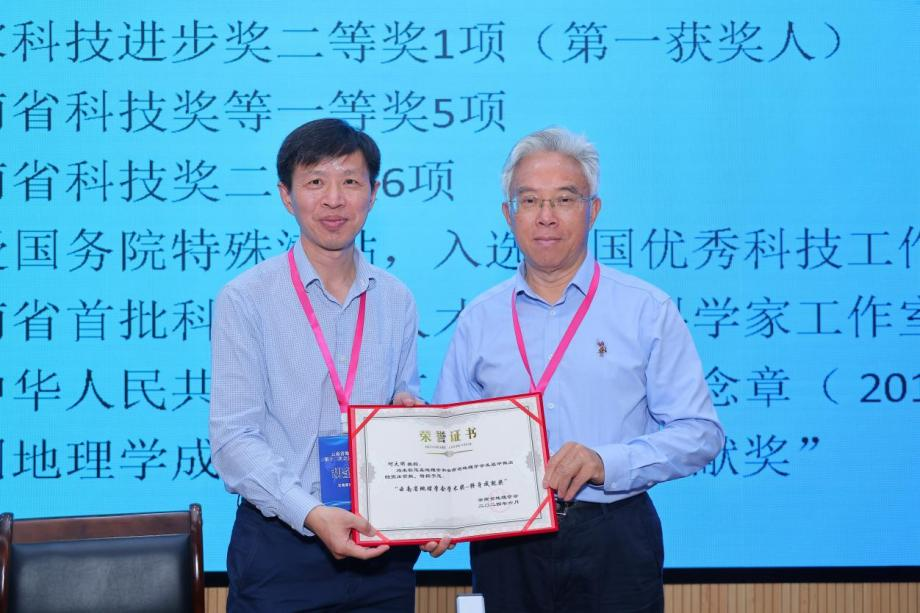 大会选举产生了云南省地理学会第十二届理事会理事。第十二届新当选理事长陈光杰对新一届云南省地理学会作了未来工作展望。大会提名云南大学何大明为云南省地理学会终身成就奖获得者,胡金明为何大明颁发了荣誉证书。