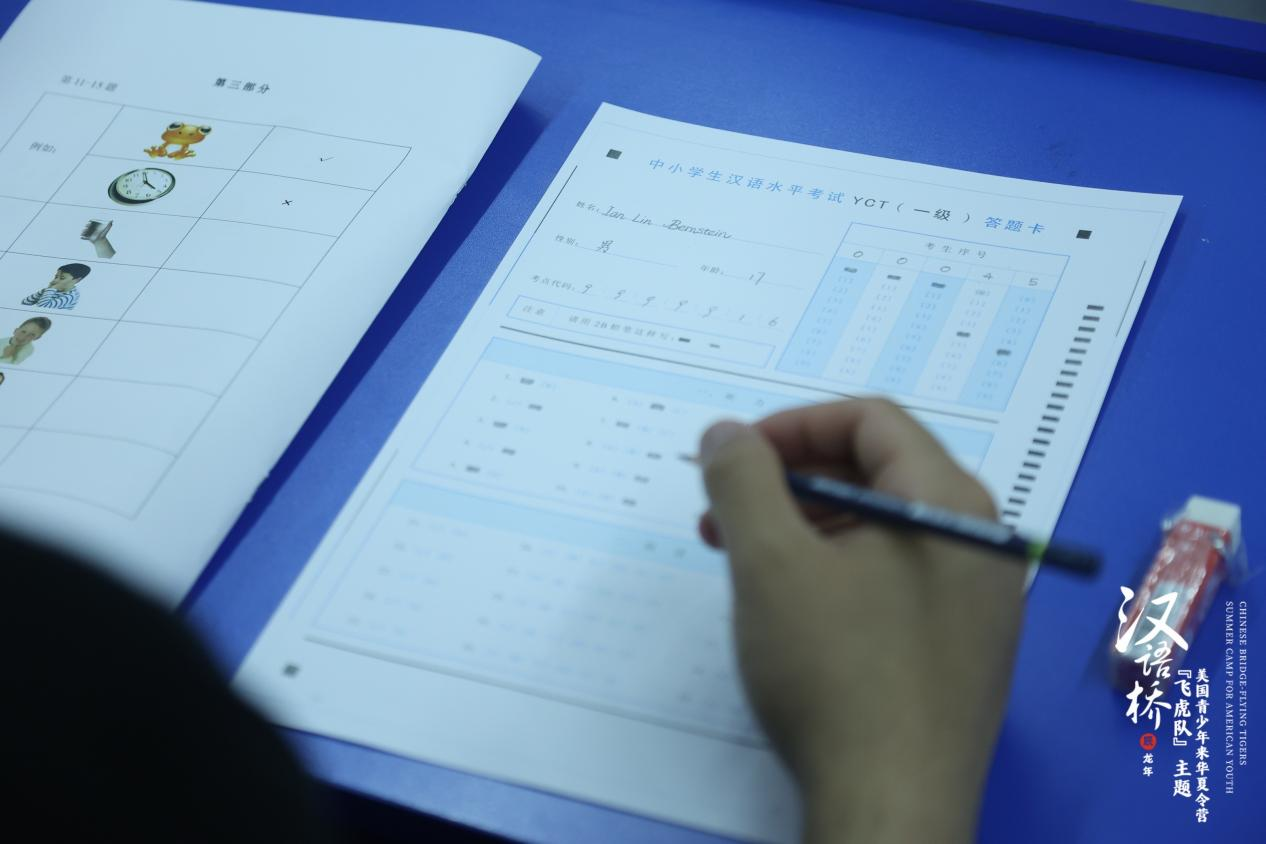 体验课程结束后,营员们迎来了中小学生汉语考试(YCT一级)。虽然不少同学表示考前有点小紧张,但考试时都表现得自信从容。这场考试不仅是对他们交流期间学习中文的成果检验,更是他们成长路上一次宝贵的经历。