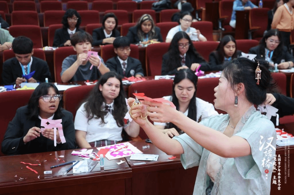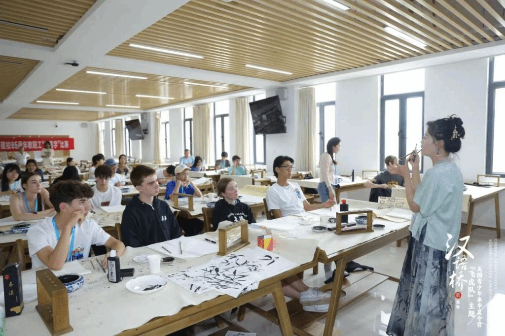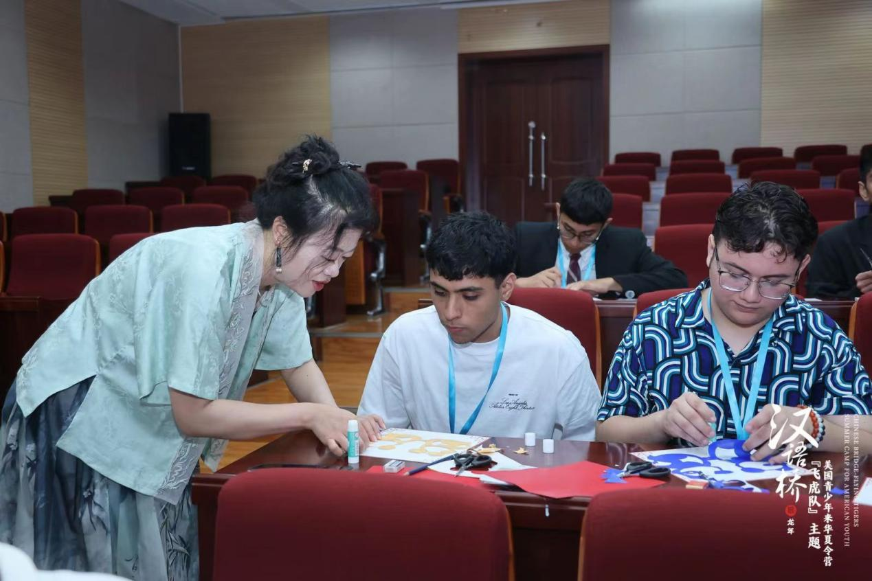 7月2日,参加汉语桥“飞虎队”主题夏令营的美国青少年们走进365英国上市官网,上了一堂生动的中国传统文化体验课。