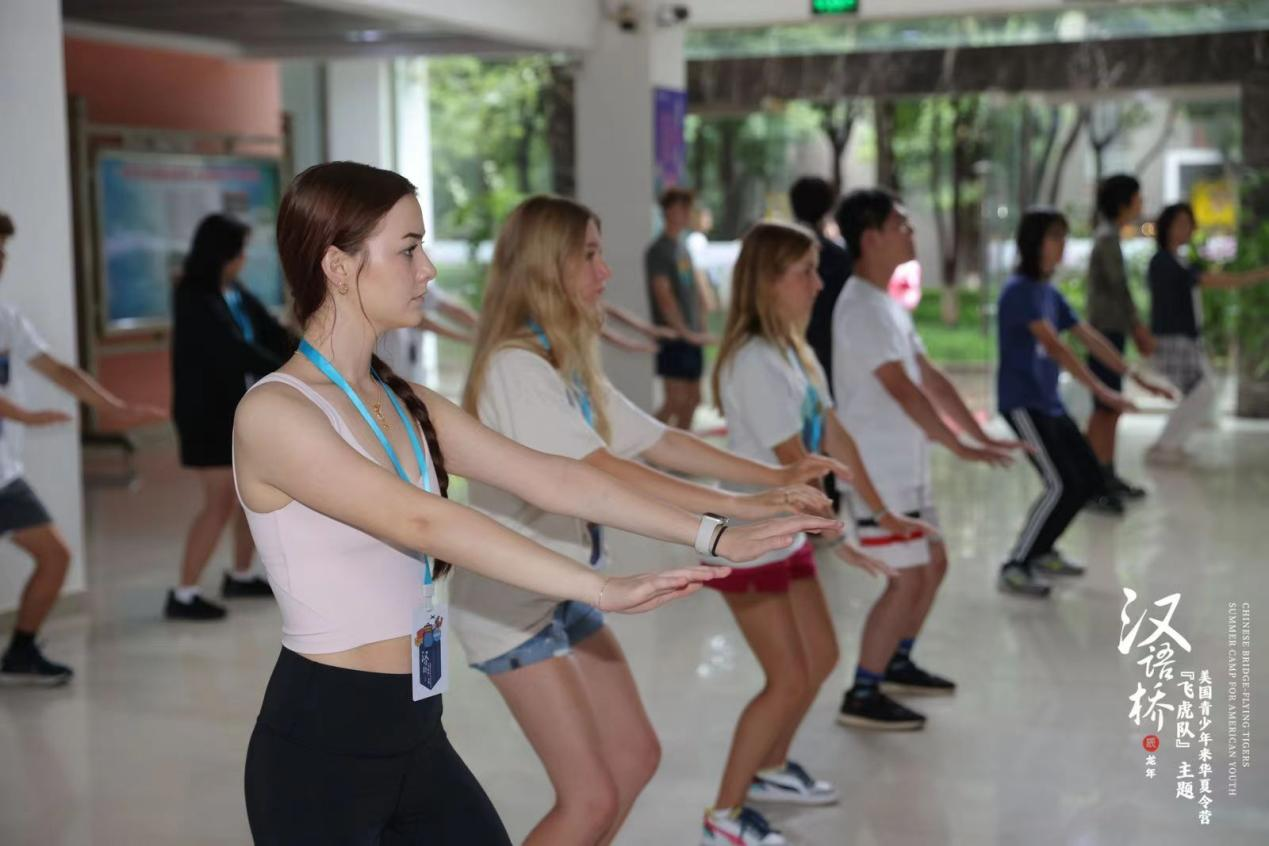 同时,武术体验课也在如火如荼进行。在老师的悉心指导下,营员们逐一认真学习了白鹤亮翅、野马分鬃、揽雀尾等招式的动作要领,一边练习一边领悟太极拳的轻柔与刚劲。Anastazia Geraghty感叹道,“跟随老师的步伐,一步步练习,我们乐在其中,收获满满。今后我也要多练练太极,有益身心健康。”