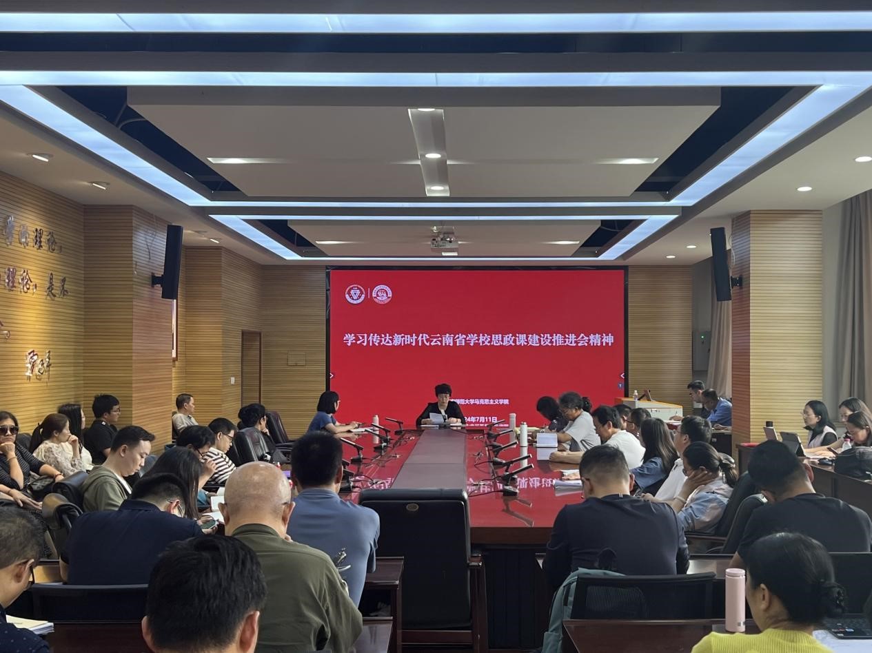 7月11日下午,我校马克思主义学院召开会议学习传达新时代云南省学校思政课建设推进会精神,学院全体领导班子成员、教职工参加了会议。