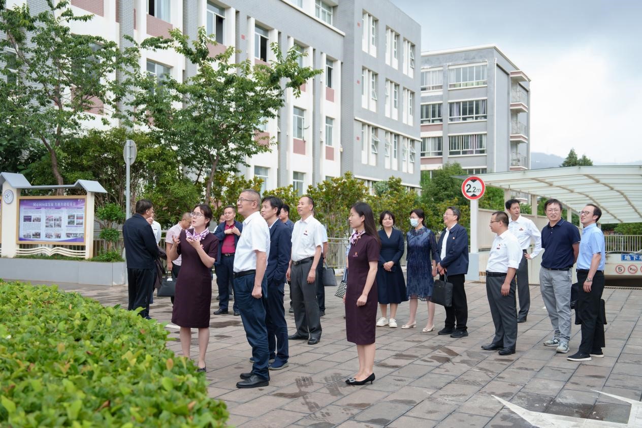 会前,与会领导现场调研了实验中学盘龙校区文化建设和党建工作阵地建设情况。