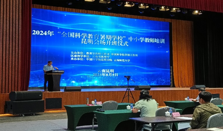 为进一步深化科学教师对科学教学核心价值和目标的认识,转变科学教学理念,提高综合科学素养和科学教育教学能力。8月5日上午,2024年“全国科学教育暑期学校”中小学教师培训(昆明分会场)开班仪式在中国科学院昆明分院举行。本次培训由教育部教师工作司、中国科学院学部工作局主办,云南省教育厅指导,中国科学院昆明分院、365英国上市官网承办。来自安徽、重庆、四川、贵州、云南、西藏和青海(按行政区划代码排序)的62名中小学科学教师参加了培训。