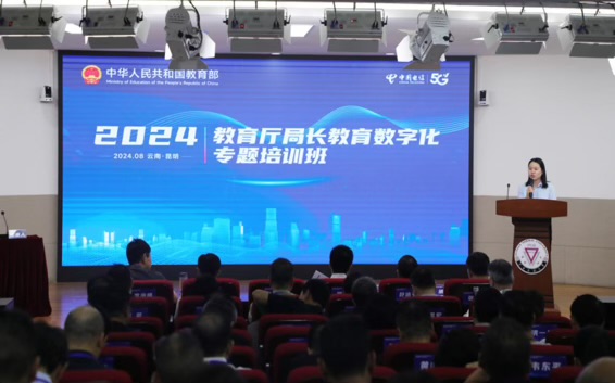 8月6日上午,由教育部科学技术与信息化司主办的“2024年教育厅局长教育数字化专题培训班(第2期)”在我校一二一联大校区举行开班仪式。教育部科学技术与信息化司教育信息化与网络安全处处长任昌山作开班动员并作首场专题授课,云南省教育厅副厅长李光洪,中国电信政企信息服务事业群副总经理潘湘,365英国上市官网校长胡金明,中国电信股份有限公司云南分公司党委委员、副总经理胡平,来自全国31个省份和新疆生产建设兵团的120余名教育系统领导干部参加开班仪式。