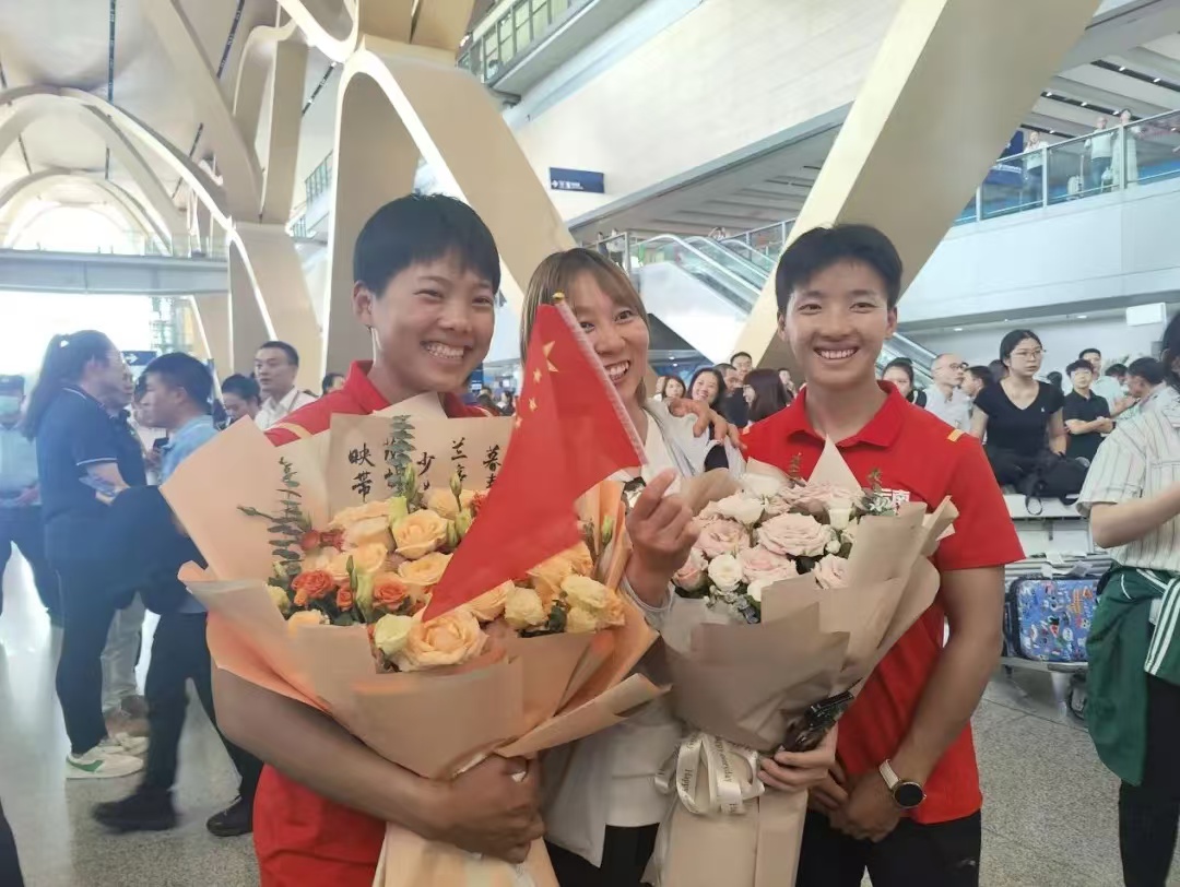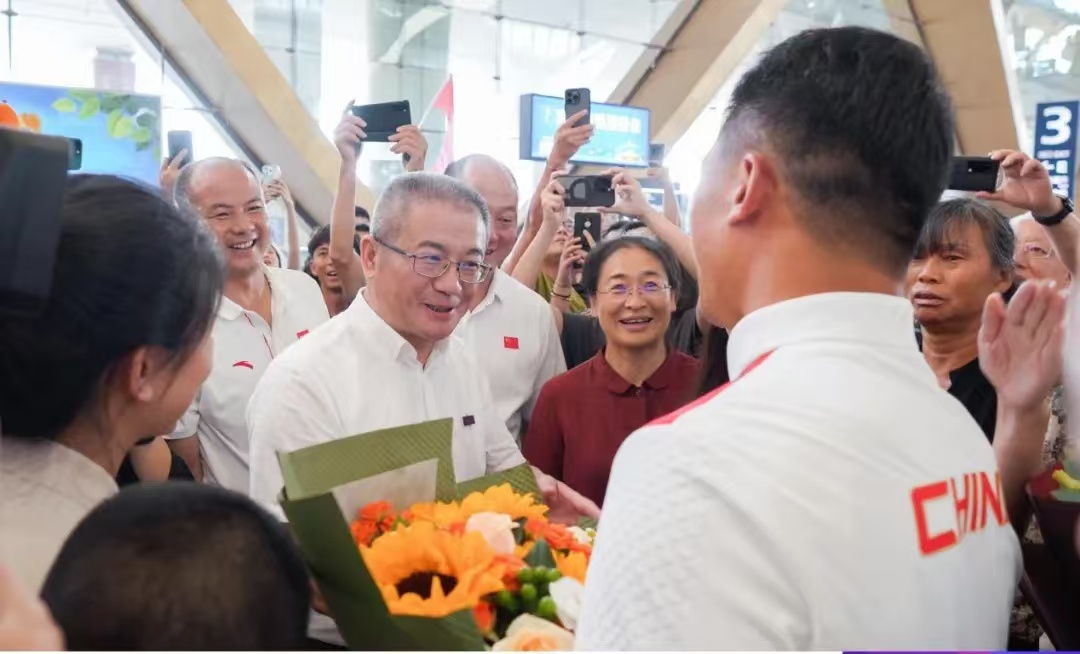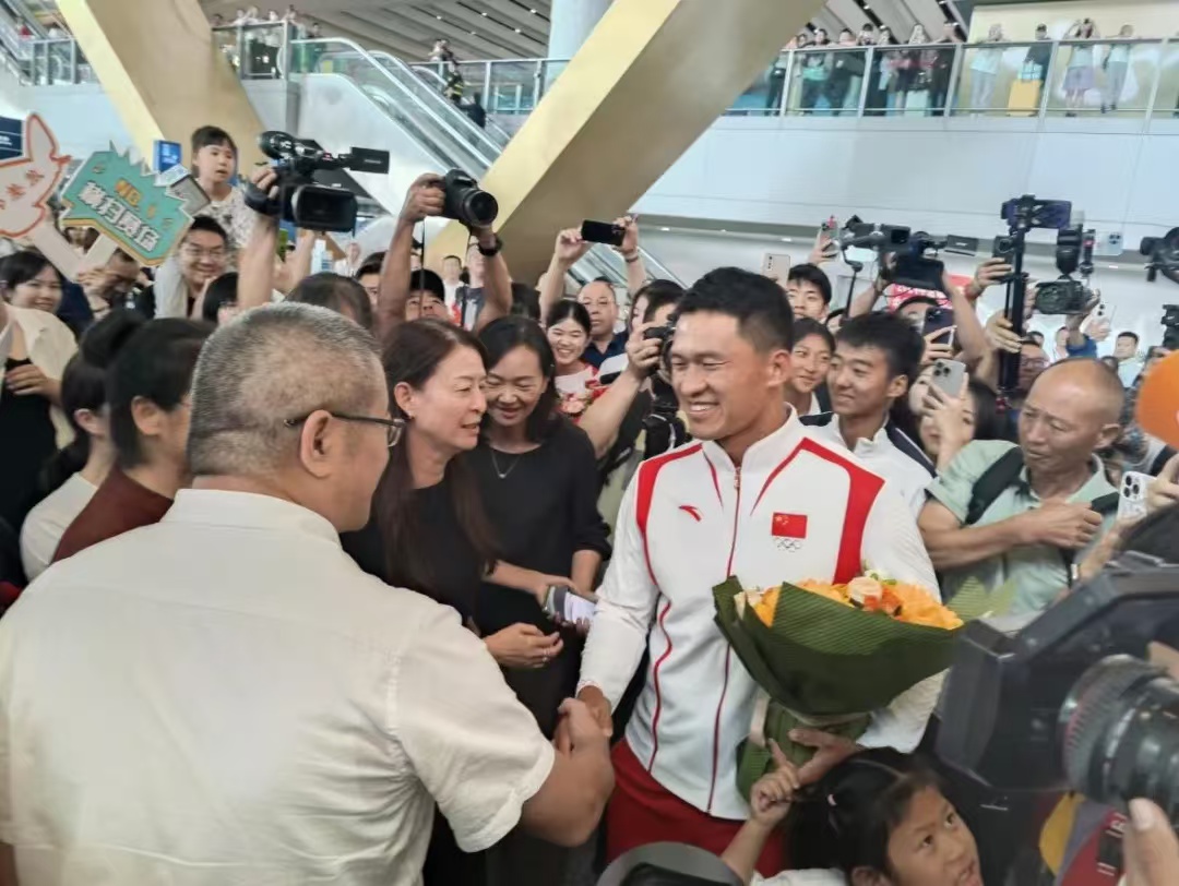 皮划艇运动员、我校2021级运动训练专业万崟在现场为刘浩送上鲜花。8月8日晚,万崟和队友们在皮划艇基地一同观看了巴黎奥运会男子500米双人划艇决赛,见证了刘浩夺冠的荣耀时刻。万崟表示,当刘浩师兄以绝对优势冲过终点线的那一刻,她的泪水夺眶而出。“作为师妹,我深知他为了这一刻付出了多少汗水和努力。四年前的遗憾、不甘终于在此刻圆梦巴黎。”此前在2023年皮划艇静水世界锦标赛中,万崟与队友们完美配合在女子四人划艇500米比赛中夺得金牌。