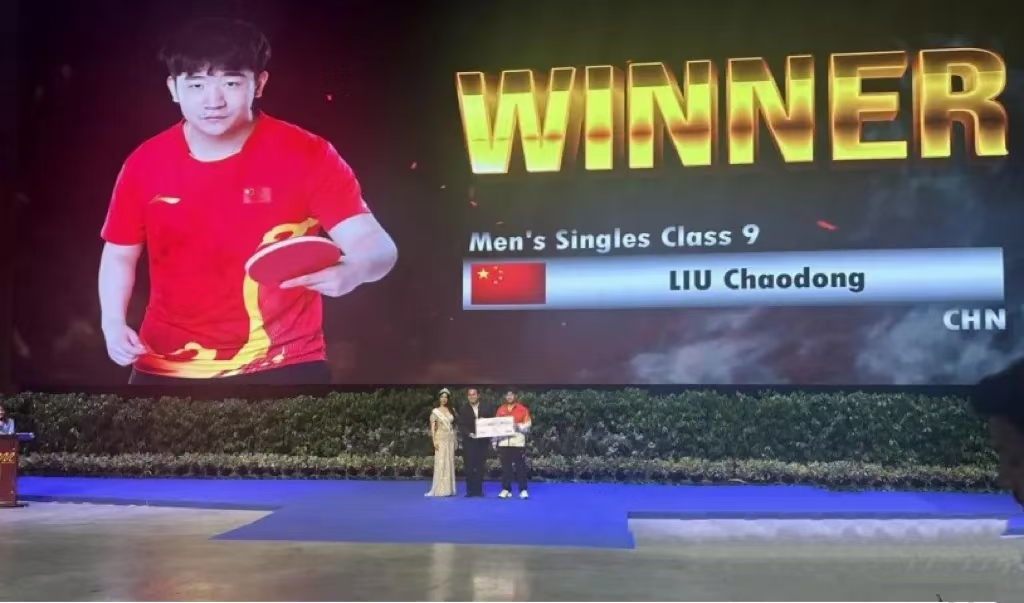 2024年5月23日至25日,在2024年残奥乒乓球泰国世界单打资格锦标赛中,刘朝栋奋力拼搏,一路过关斩将,最终将TT9级男子单打比赛金牌收入囊中,这标志着刘朝栋顺利拿到了巴黎残奥会参赛资格。