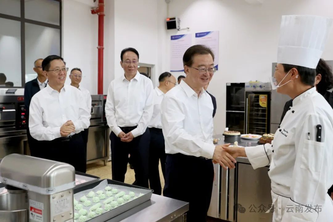 王宁、王予波始终牵挂特殊教育,来到云南特殊教育职业学院慰问教师、了解学院发展历程和办学情况。走进书画艺术、广告设计、西点制作等实训室,观看学生习作,与师生一起交流,鼓励大家自强不息,多学知识和技能。王宁强调,特殊教育保障了残障孩子的受教育权,让他们在成长道路上,一个都不掉队、一个都不能少。希望全省特殊教育工作者悉心呵护学生,做好康复与教学,多一份爱心耐心,引导孩子们自尊自信,帮助他们掌握一技之长、融入社会,与所有孩子一样在阳光下健康、快乐、幸福成长。