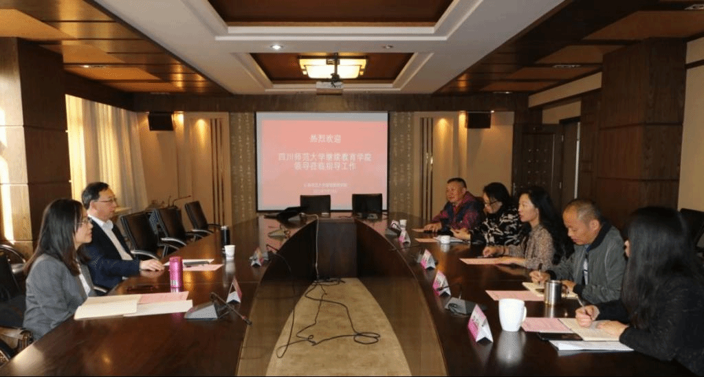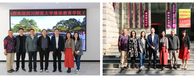 会上,继续教育学院院长唐瑛代表学院师生欢迎四川师范大学继续教育学院院长王官诚一行到学院交流调研,并着重介绍了学院多年来在教师职后教育方面的顶层设计、创新举措和实践成效。王官诚院长高度评价我校继续教育学院在教师职后教育方面的创新做法和取得成效,同时介绍了四川师范大学继续教育学院的发展战略、机构设置和市场化培训的运行体制机制等情况。与会人员就新时代教师职后教育发展的机遇和挑战进行了较为深入的探讨。