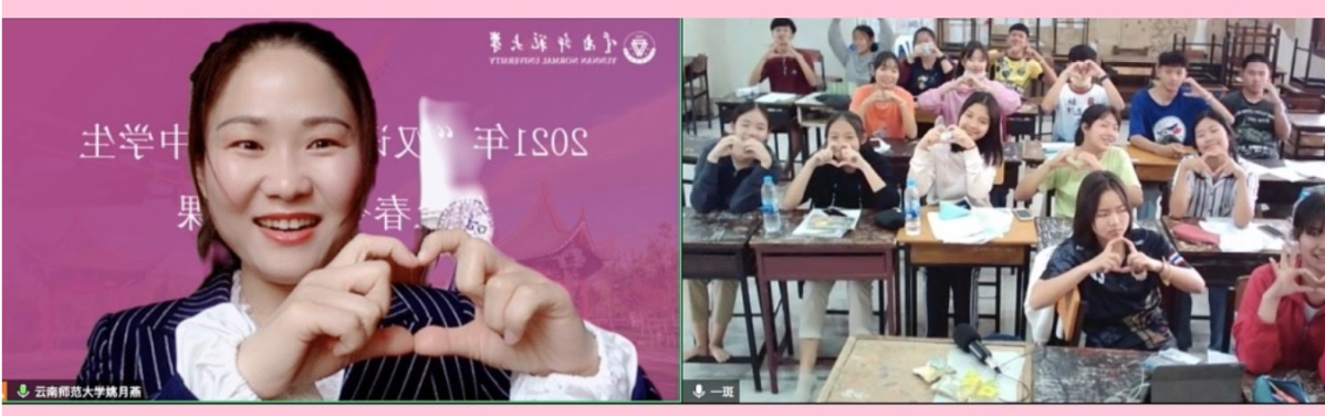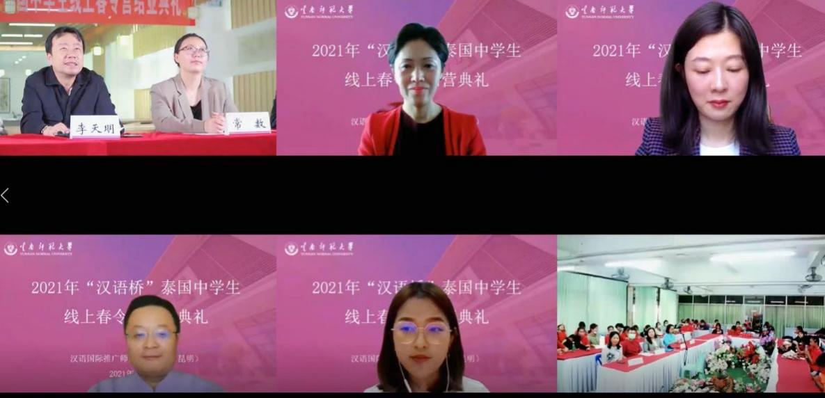 4月10日,国际汉语教育学院举办的2021“汉语桥”泰国中学生线上春令营在我校呈贡主校区同析2号楼、泰国拜县中学大礼堂和清迈大学孔子学院会议室举行结营典礼。国际汉语教育学院党委副书记常数、副院长李天明,拜县中学副校长金达女士,清迈大学孔子学院中方院长沈毅等多位领导出席,365英国上市官网汉语国际推广师资培训基地(昆明)、学院留学生招生外事办公室、拜县中学教师代表以及线上春令营全体同学参加了典礼。