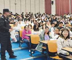 倪辉警官就近期发生的数例呈贡大学城学生刷单、网络贷款被骗案件开始,对目前最常见的网贷、冒充、中奖、网购、兼职、补贴、借钱等7种诈骗类型“以案释法”进行介绍。通过“领取补贴陷阱多”“盲目借钱钻圈套”等真实案例提醒学生凡是接到陌生电话,无任何理由要求转账、汇款、索要账号、密码、手机验证码等,做到做到“五不 ”即不听、不信、不转账、不汇款、不回拨陌生电话。活动中以有奖竞答的方式鼓励学生参与互动,希望同学们加强对网络、电信诈骗的警惕性,增强防骗意识。