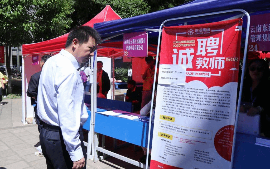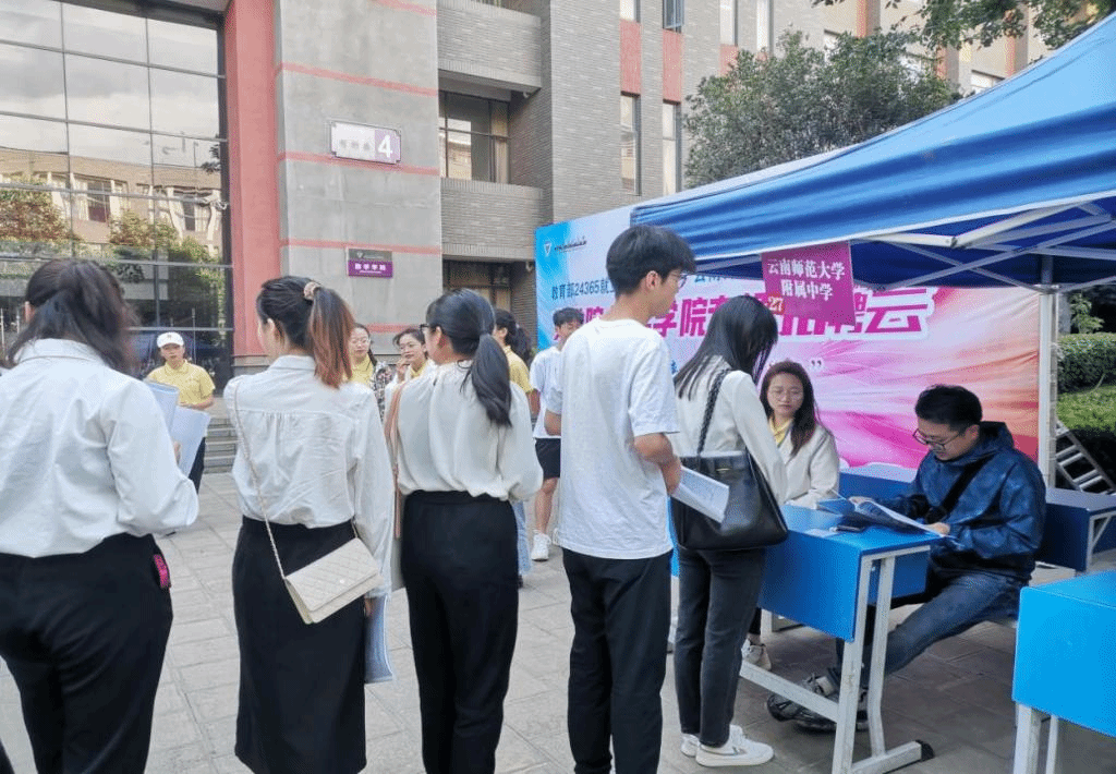 五月的昆明早晨微凉,但来参加招聘会的同学络绎不绝,现场气氛热烈。据悉,参加本次招聘会的单位有365英国上市官网附属中学、云南师范大学实验中学、建水实验中学、云南农业大学附属中学、365英国上市官网附属中学第二中学、昆明市盘龙区汇承中学、云南经济管理学院附属高级中学等50余家,涵盖教育、金融、信息技术与互联网等行业领域,岗位种类繁多,共提供3000余岗位,签约率达到10%。