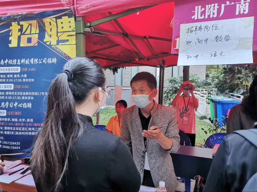 招聘会于5月13日上午在呈贡主校区数学学院(同析四栋)如期举行,招聘会现场志愿者由学院各支部党员组成。全体党员努力践行全心全意为人民服务的宗旨,把人民群众放在心中,在为群众办实事中不断赢得同学们的信任,进一步增强党和人民的血肉联系。