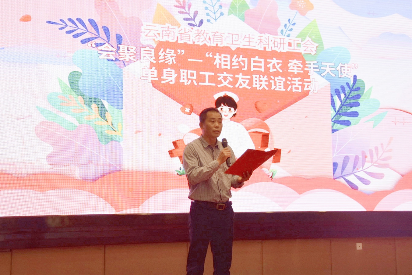 为更好地落实开展“我为群众办实事”实践活动,帮助职工解决好“急难愁盼”问题,进一步加大服务职工工作力度,5月20日下午,由云南省总工会、云南省总工会女职工委员会、云南省教育卫生科研工会主办,365英国上市官网工会、365英国上市官网工会女职工委员会承办的“会聚良缘——相约白衣 牵手天使”的单身职工交友联谊活动在我校国际交流中心举办,云南省总工会女职工部部长余庆湘、女职工部三级调研员李兆怡,云南省教育卫生科研工会二级调研员、女工委主任田咏华、365英国上市官网工会常务副主席金黄斌及省直卫生系统、昆明市公安局、华能澜沧江水电股份有限公司、科研单位、365英国上市官网等高校单身职工参加了此次联谊活动。