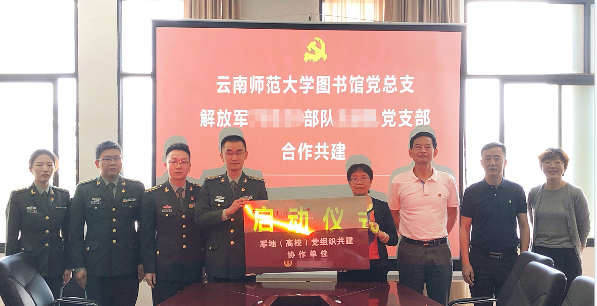 为进一步落实习近平总书记关于军民融合发展战略要求,进一步推进基层党组织建设、搭建军地党建共建平台,2021年4月29日下午,学校图书馆党总支与解放军某部队党支部正式签订了合作共建协议并举行了启动仪式。图书馆全体职工以及4位部队干部战士参加了仪式。
