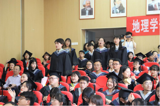 教师代表潘玉君教授为毕业生送上寄语。他饱含深情地说到,今年是他从教的第35年,地理学部历史悠久,同学们在地理学部刻苦学习、聆听教诲,涵养了高尚的情怀,掌握了为云南、为西南、为全国、为世界、为人类服务的真才实学。学部所有老师希望并且坚信大家会秉承西南联大师生“教书救国、读书报国”的精神,在将来的工作实践中取得更好的成绩,有更好的自我实现。