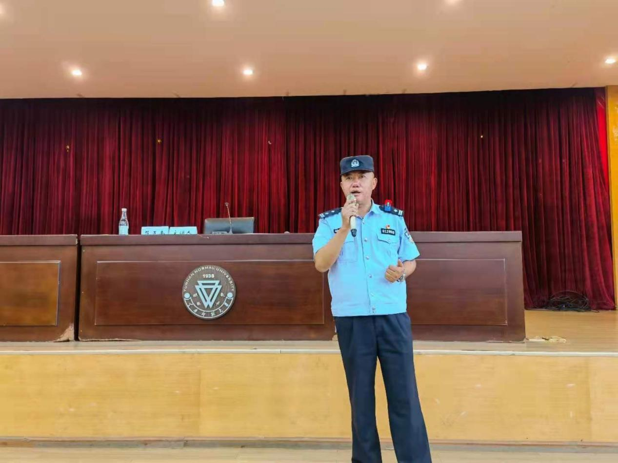 在安全教育篇章,学院邀请了统战部部长龙梅对新同学开展政策解读,还邀请到了文林派出所警官范正奎围绕人身安全、财产安全等方面对新生进行了安全教育,范警官提醒同学们在校期间要严守安全底线,不断提高自我防范意识。